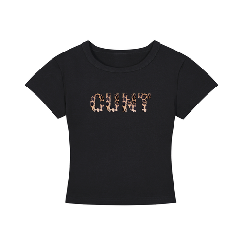 Cunt Solid Color Raglan Sleeve Crop Top -